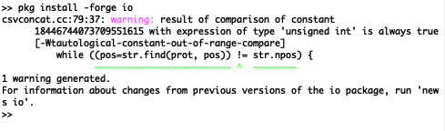 9. Octave上のコマンドウィンドウで次のコマンドを実行します。>> pkg install -forge image>> pkg install -forge io少し時間がかかります。 |