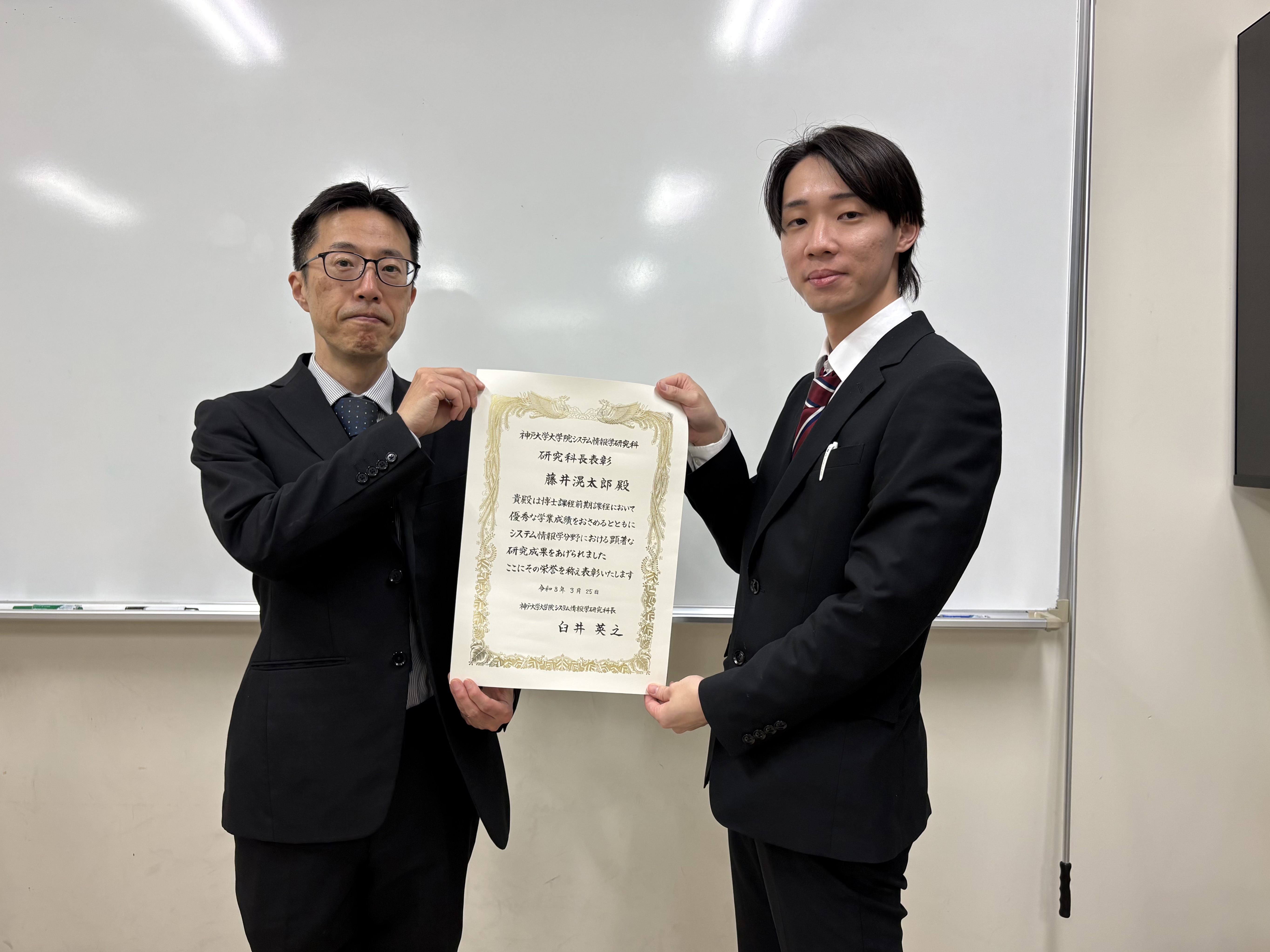 M2の藤井さんが研究科長表彰を受賞しました.
